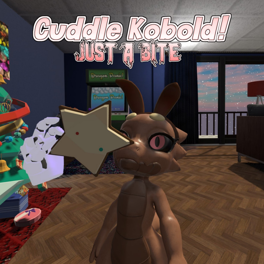 Cuddle Kobold! is a Virtual Reality game intended for PC VR and Meta Quest, with non-VR support. You host an Exchange Monster visiting your world! Together you and the Kobold will learn about each other, share a variety of activities together, and yes, cuddle. Your experience is adjustable, so if you just want to hang out and play cards with a Kobold friend, the choice is yours!
