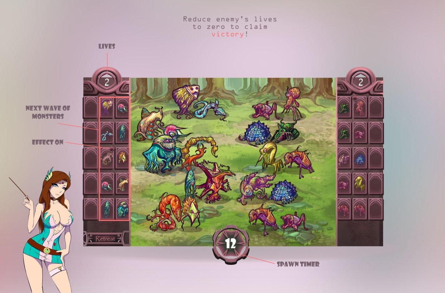 - Unique hand-crafted frame by frame or 2.5D animation for breeding, battles